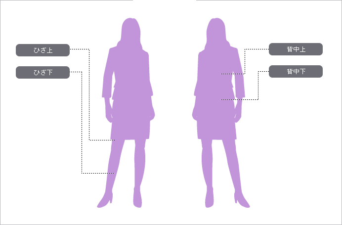 ひざ上 / ひざ下 / 背中上 / 背中下